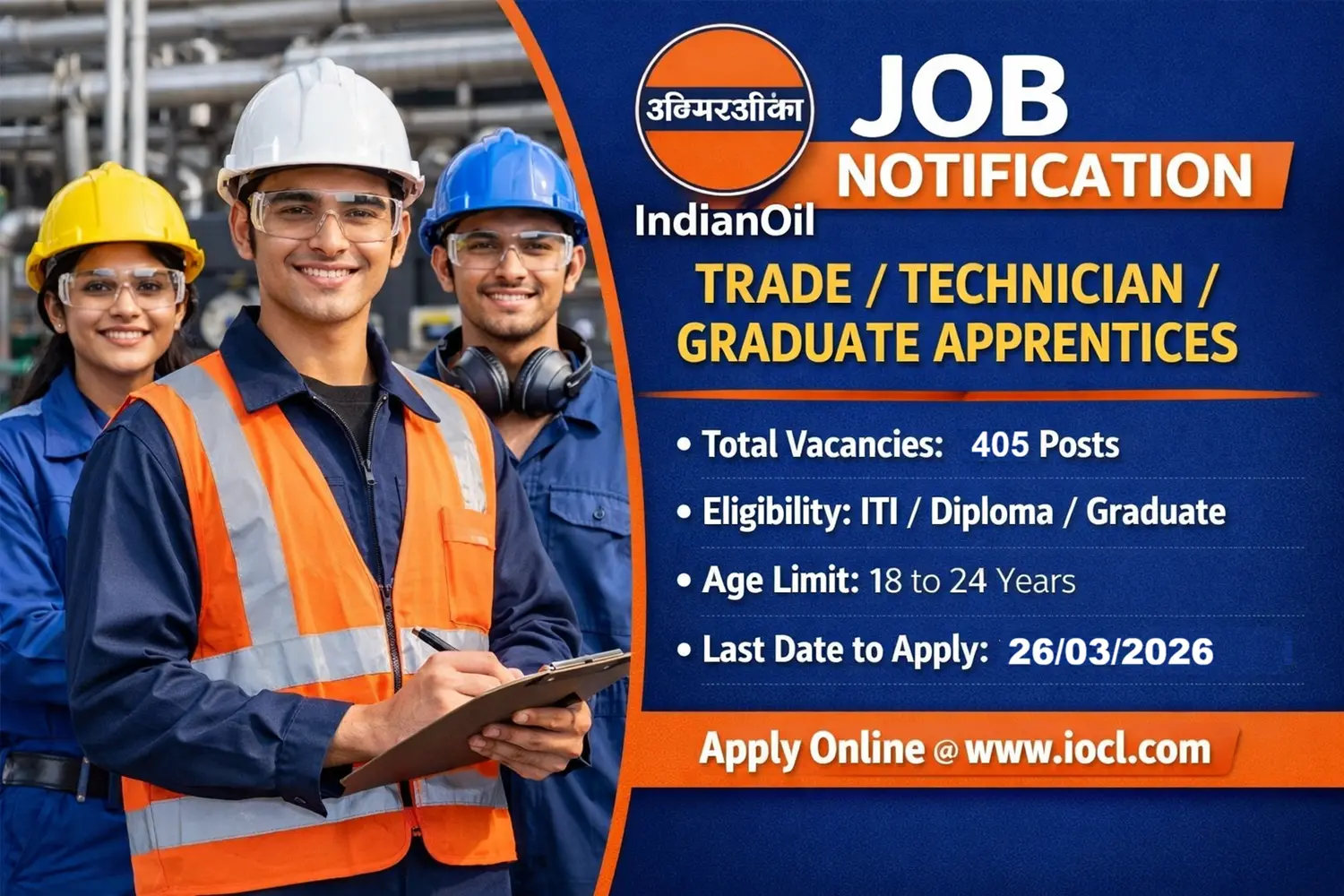 Indian Oil Corp. Ltd (IOCL) Recruitment of 405 Trade/ Technician/Graduate Apprentices | Western Region |